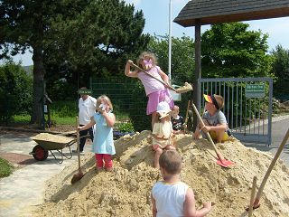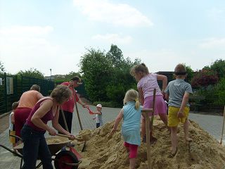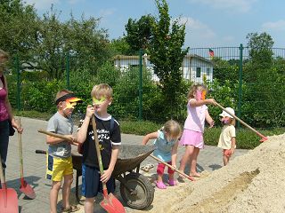 | Kinderspielplatz wird gebaut - die Kinder helfen mit! | |